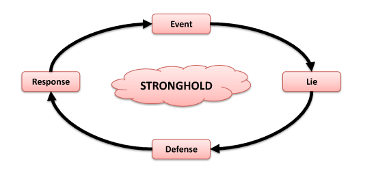 What’s a stronghold? A stronghold is a wrong pattern of behavior or a pattern of thinking that is contrary to the nature of God and the Kingdom of God. Strongholds are rooted in the Devil’s lies. Here’s what a stronghold looks like: